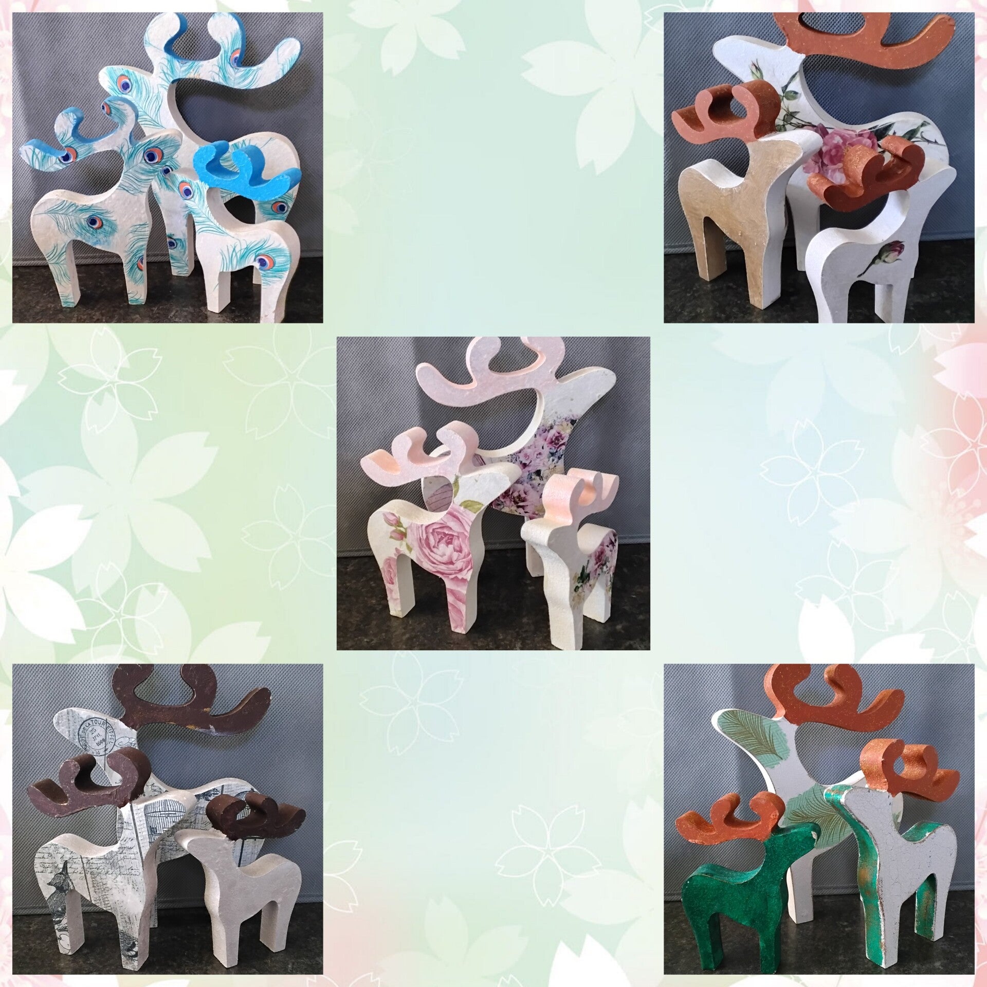This trio of Reindeer comprises of small (9 x 12 cm), medium (11 x 15) and large (15 x 20 cm)